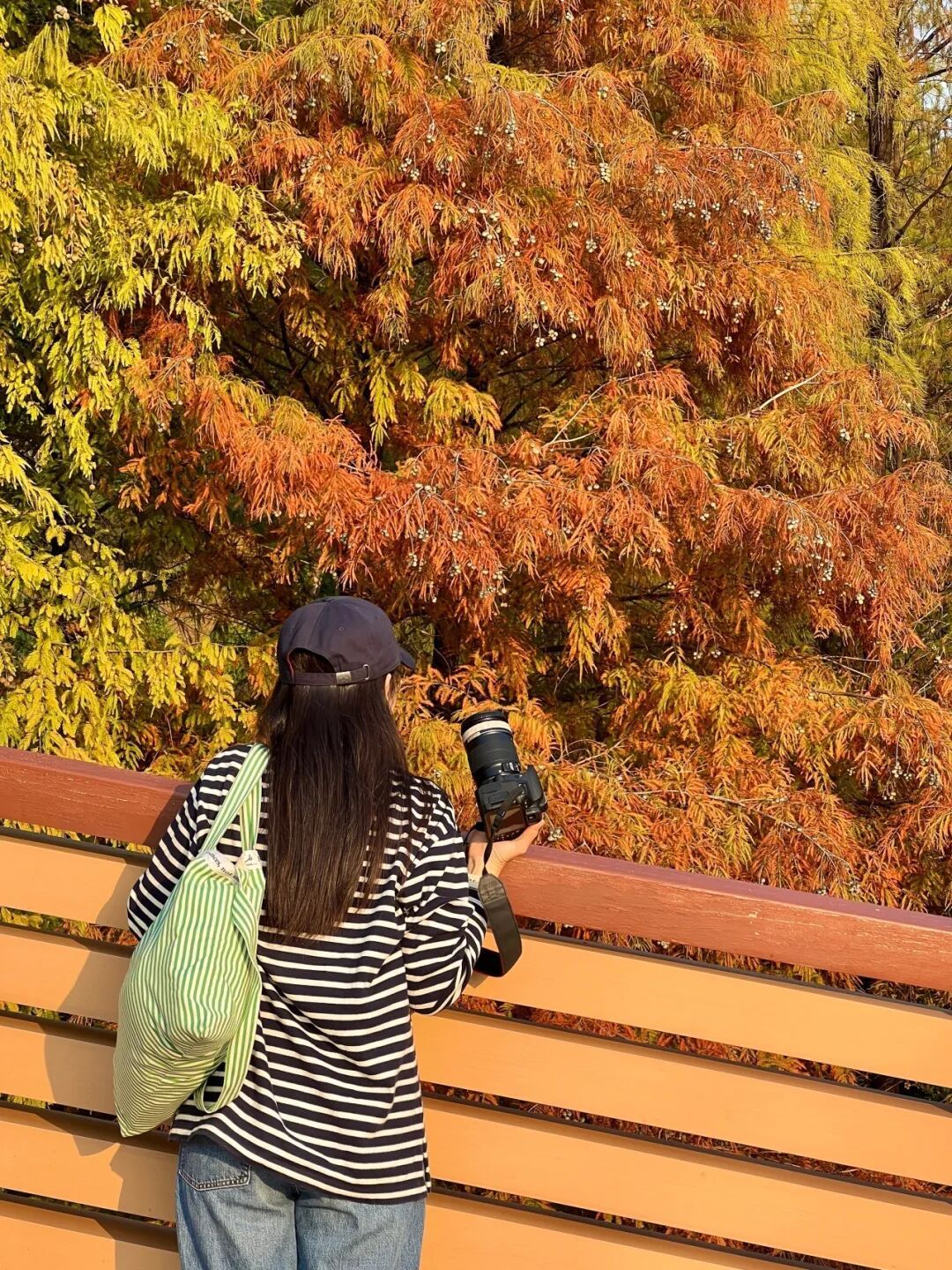 有东说念主痴迷在林中金色的风里,有东说念主举起相机按下快门,也有东说念主坐在桥边静静看着风吹过树梢,让冬天变得温顺而柔嫩。