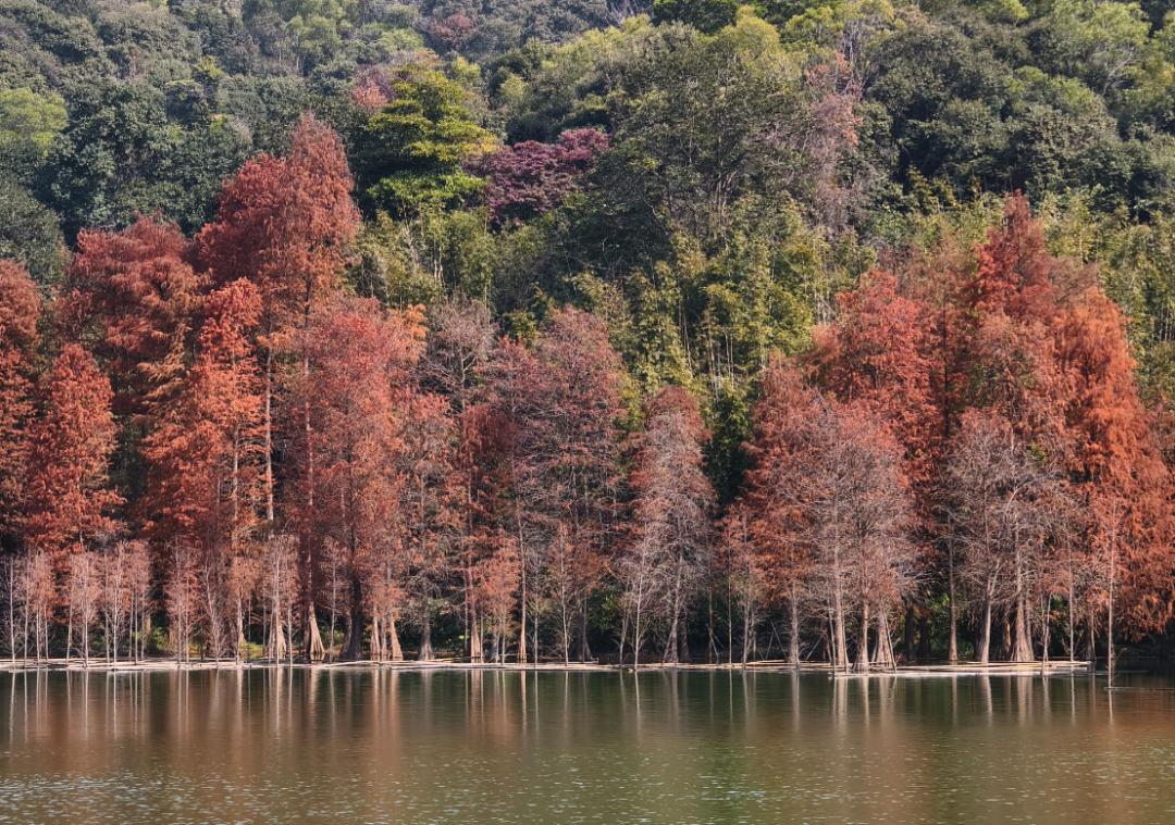 12月起至1月中旬,云溪植物园将迎来落羽杉的“高光季”。届时,成片树林将调和换上秘要的锈红与古铜色,仿佛冬日点火的一簇簇火苗,又像洒在山林间的一幅巨幅油画,壮丽而诊疗。