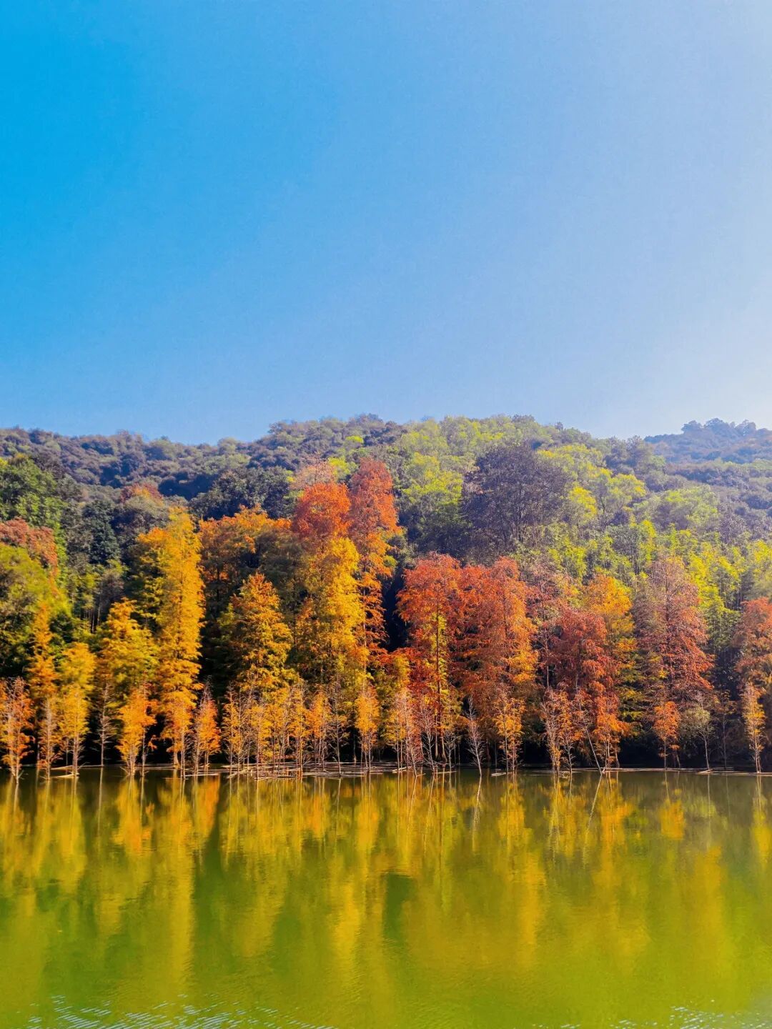 ▲近期黄婆洞水库落羽杉好意思景